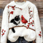 Ženski flanelasti dukserica s slatkim božićnim mačkama umjetnički print
