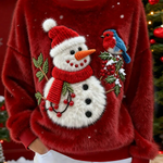 Ženski flanelasti hoodie s printom božićnog snjegovića i ptica