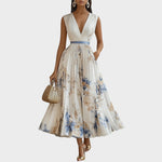 Haljina s cvjetnim uzorkom unosi dašak svježine i nježnosti u svečane trenutke. Dizajnirana je za posebne prilike gdje želite izgledati profinjeno i ženstveno.