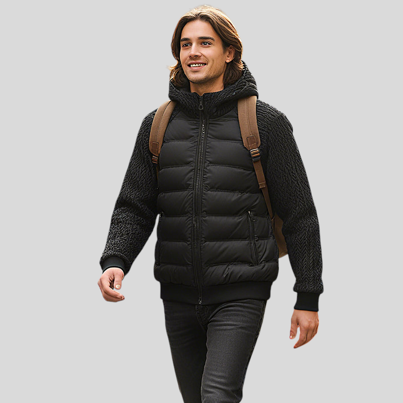 Ova jakna spaja toplinu, udobnost i moderan izgled u jednoj praktičnoj komad. Podstavljeni prednji dio pruža izvrsnu toplinsku izolaciju, dok teksturirani rukavi daju jedinstven, suvremen stil. Lagan je, udoban i idealan za svakodnevnu upotrebu, a kapuljača dodaje dodatnu funkcionalnost u hladnijim danima.