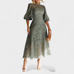 • Elegantna i suptilna dizajn – rukavi u obliku lampiona i čipka daju haljini lagan i rafiniran izgled.