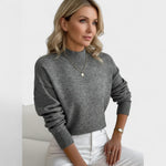 Ovo je idealan pulover s visokim ovratnikom za žene koje žele jednostavno kombinirati stil i udobnost. Izrađen od mekanog i fluidnog materijala, završava elegantnim visokim ovratnikom koji osigurava toplinu i njegovan izgled. Savršen za svježije dane – bilo da radite, ste u pokretu ili se opuštate kod kuće. Krojenje koje laskavo prati tijelo bez stezanja. Klasičan i svestran komad koji možete nositi s povjerenjem, sezonu za sezonom.