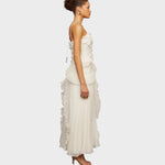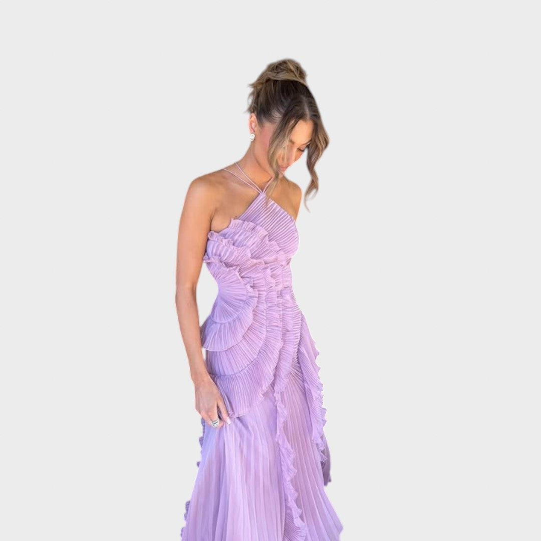 Haljina s volanima donosi razigran i lagan izgled koji osvaja na prvi pogled. Stvorena je za trenutke u kojima želite izgledati nježno, elegantno i bez napora privlačno.